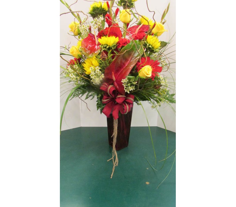 • Vase Arrangement with Reds and Yellows