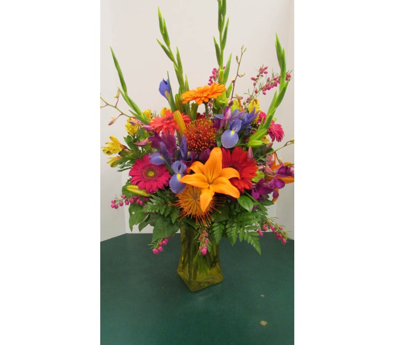 Product Code: Vase Arrangement, with Oranges, Pinks, Yellow